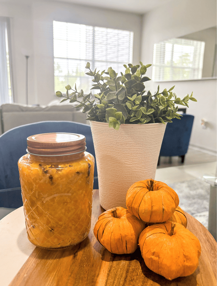 1. Em uma panela, coloque a abóbora e o monk fruit.